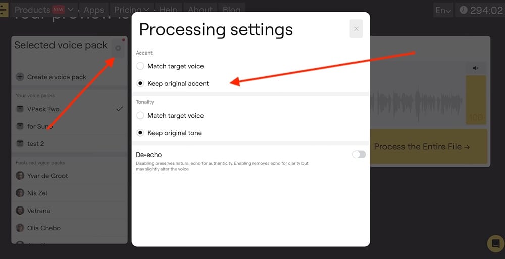 - 'Keep original accent' preserves the accent from the original recording. Even though the voice timbre changes, the pronunciation patterns of the source speaker remain intact.