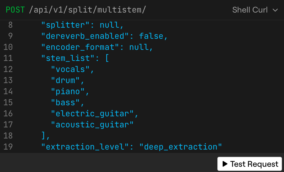 Need multiple stems at once? API v1 allows you to split a file into several stems in a single request. This reduces processing complexity and simplifies backend logic, which is especially useful for platforms handling large volumes of files.